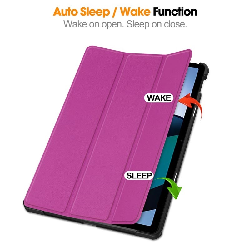 Of je nu een video bekijkt of tekent met een stylus op je Xiaomi Redmi Pad SE, deze foliocase houdt hem in een ideale hoek, voor een comfortabelere en productievere ervaring. Ondertussen schakelt de slimme wake-up / sleep-functie het display automatisch in wanneer u de voorklep opent.
