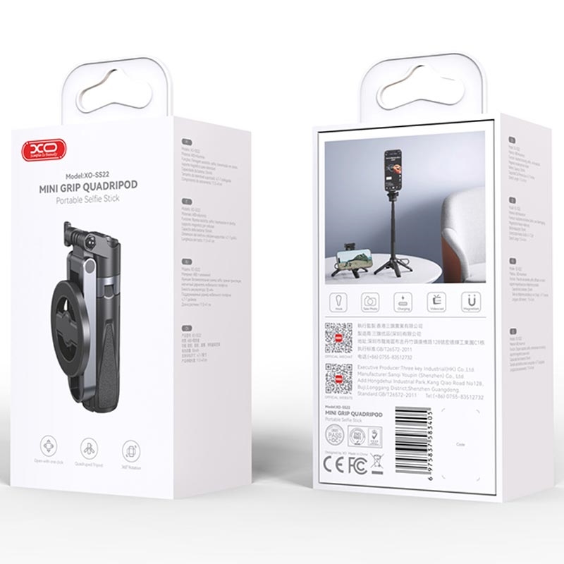 XO SS22 4-in-1 magnetische Bluetooth selfie stick en statief - compacte telefoonhouder met afstandsbediening