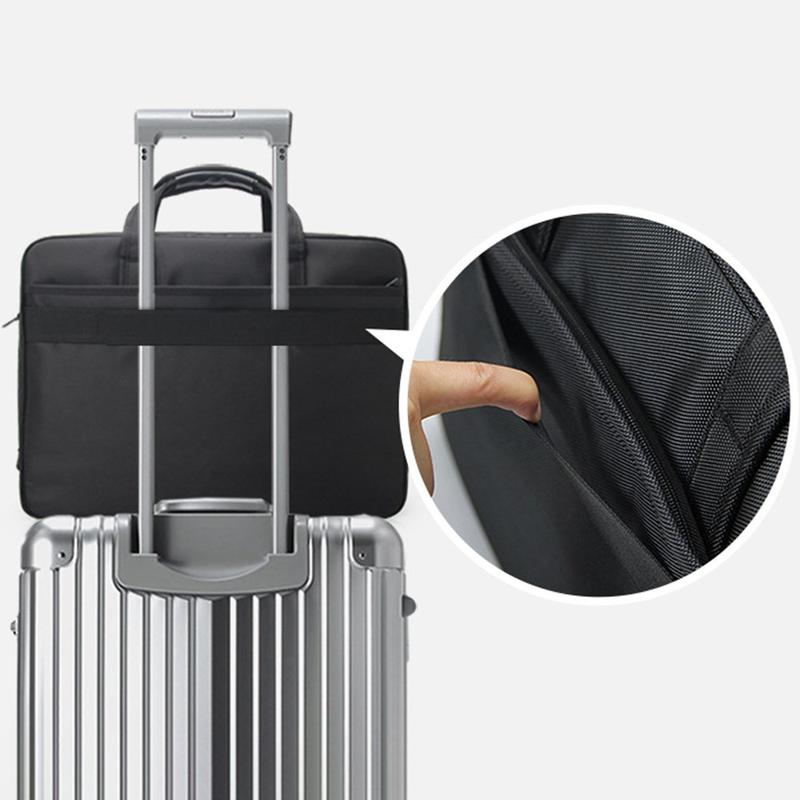 Een soepele uitbreidingsrits maakt het mogelijk om de capaciteit van de tas te vergroten wanneer dat nodig is - ideaal voor zakenreizen of dagen waarop extra documenten en accessoires nodig zijn. Het ontwerp van de achterste bagageband zorgt voor een veilige bevestiging aan de handgrepen van de koffer, waardoor de tas minder belast wordt tijdens het reizen. Het stevige handvat bovenaan en de afneembare, verstelbare schouderriem (90-150 cm) bieden flexibele draagopties voor elke gelegenheid.