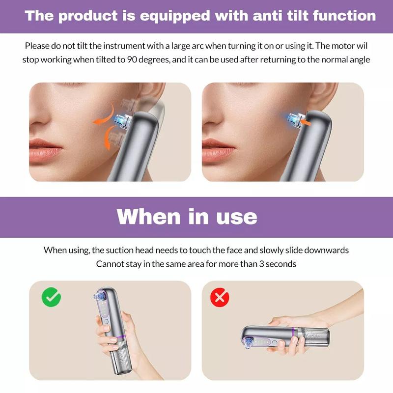 - Meerdere zuigniveaus: Kies uit instelbare intensiteitsstanden voor verschillende huidtypes en huidproblemen.
