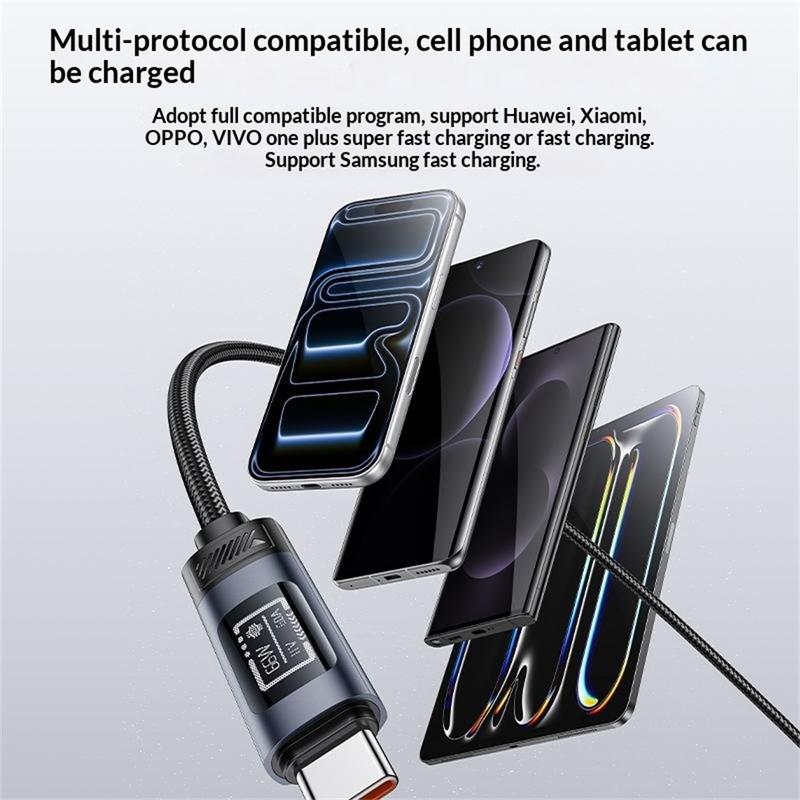 De YESIDO CA138C onderscheidt zich dankzij het geïntegreerde OLED-display dat realtime oplaadinformatie weergeeft. In combinatie met een krachtige snellaadfunctie, een duurzame gevlochten constructie en brede apparaatcompatibiliteit biedt deze kabel zowel prestaties als betrouwbaarheid voor dagelijkse oplaadbehoeften.