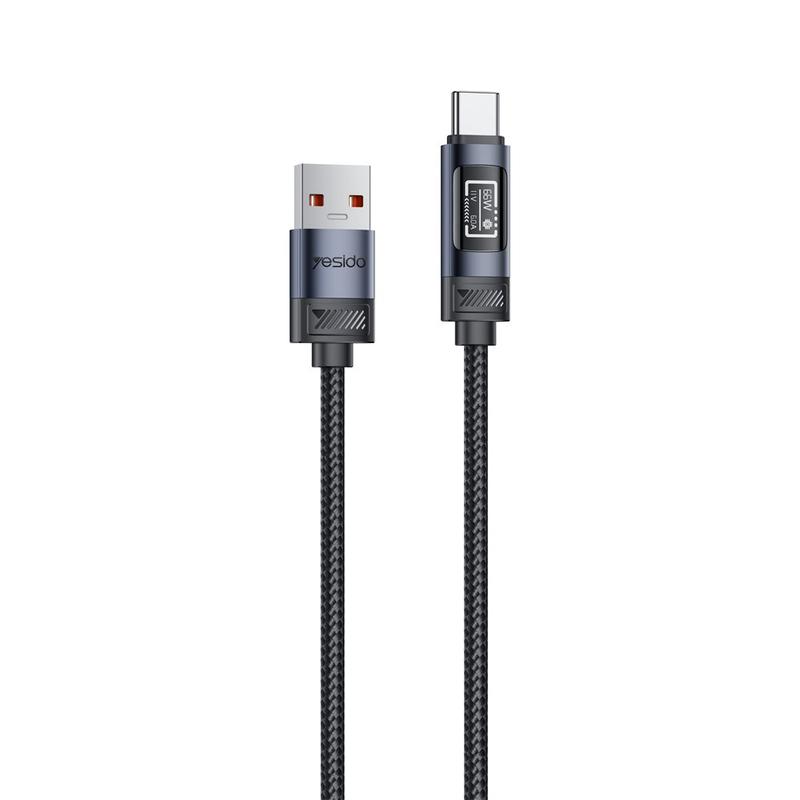 Yesido CA138C 66W snellaadkabel - USB-A naar USB-C, nylon gevlochten datakabel met OLED-display - 1.2m