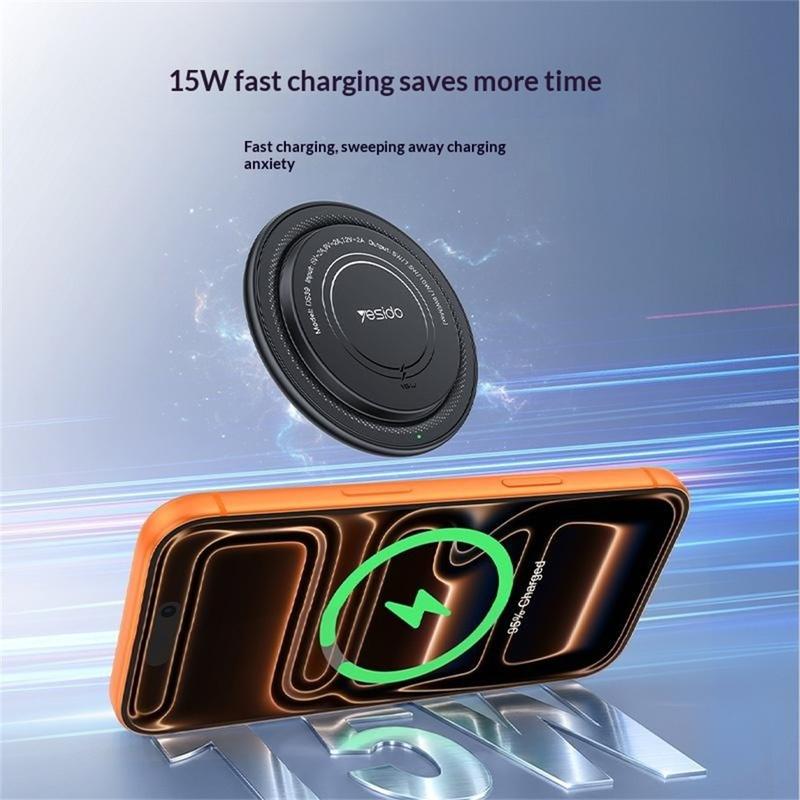 • Yesido DS39 15W magnetische draadloze oplader - rond sneloplaadstation voor smartphones en draadloze oordopjes