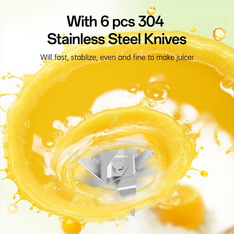 - 360° bladdekking: Geometrie met zes bladen creëert een "tornado" draaikolk - er blijven geen fruitstukjes achter.