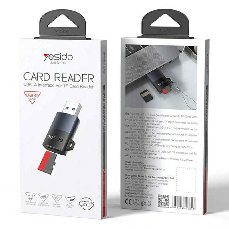 Yesido GS36 USB 3.0 TF Kaartlezer - 5Gbps Plug-and-Play adapter van aluminiumlegering