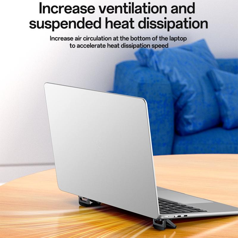 Verhoog het comfort en de luchtstroom tijdens het werken met de YESIDO LP11 laptopstandaardset. Deze ultradunne standaards, ontworpen als een compact paar opvouwbare steunen, worden aan de onderkant van uw laptop bevestigd en klappen snel uit tot een stabiele driehoekige steun. Door het apparaat iets te verhogen, zorgen ze voor een betere luchtstroom onder de laptop en verbeteren ze tegelijkertijd de kijkhoek, wat zorgt voor comfortabeler typen en een betere schermpositie.