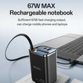 - 67W Snel Oplaadvermogen - Levert snel opladen via de ingebouwde intrekbare Type-C kabel, waardoor smartphones, tablets en andere USB-apparaten snel energie krijgen.
