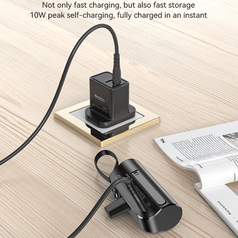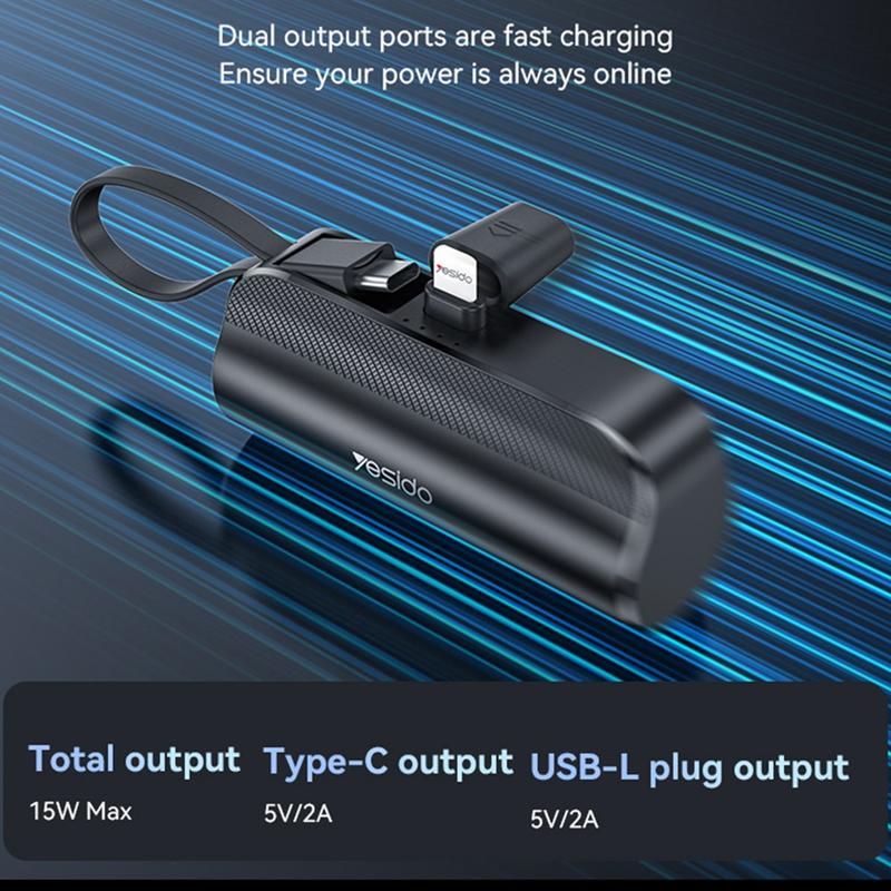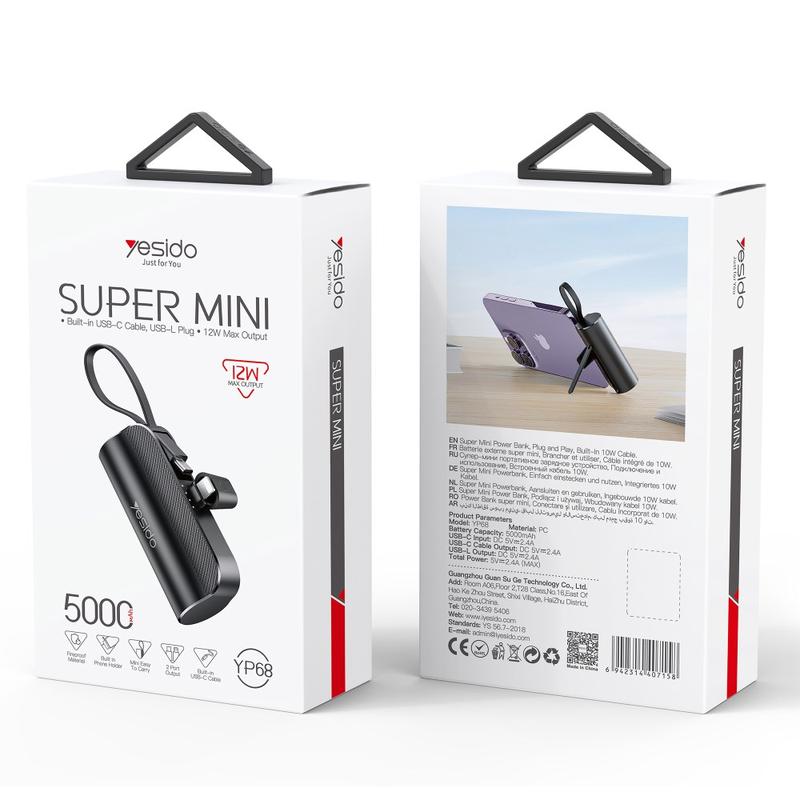 Blijf opgeladen waar je ook bent met de Yesido YP68 Mini Power Bank. Met een capaciteit van 5000mAh bevat deze compacte powerbank een Lightning-connector en een ingebouwde Type-C kabel voor handig opladen en een verborgen houder voor handsfree gebruik. Lichtgewicht, ontworpen voor duurzaamheid en draagbaarheid, waardoor het de perfecte reisgenoot is voor onderweg opladen.