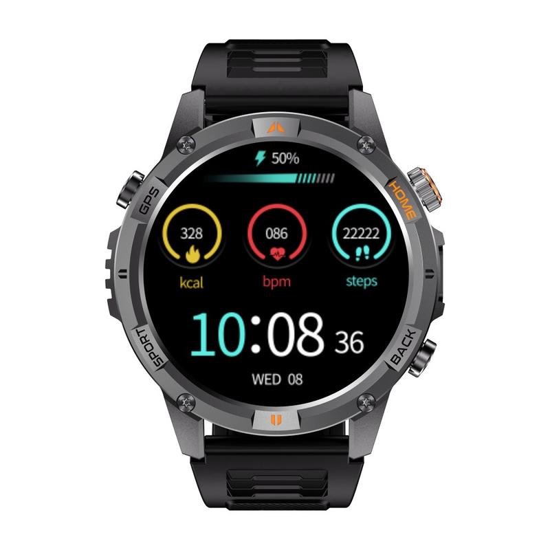 Het horloge is ontworpen voor avonturen in de buitenlucht en heeft een ingebouwde zaklamp, GPS-positionering en een digitaal kompas, zodat je vol vertrouwen over paden kunt navigeren en je routes kunt volgen. De 580 mAh batterij met hoge capaciteit biedt langdurige prestaties en levert tot 40 dagen stand-by tijd en ongeveer 7 dagen normaal gebruik. Met een IP68 waterdichtheid is hij bestand tegen regen, spatten en zwemmen zonder zorgen.