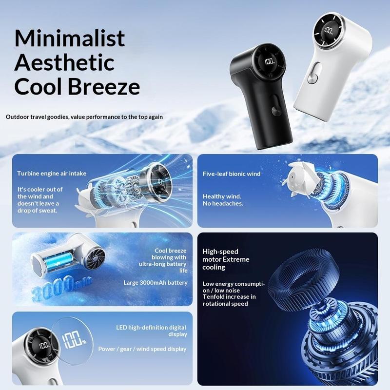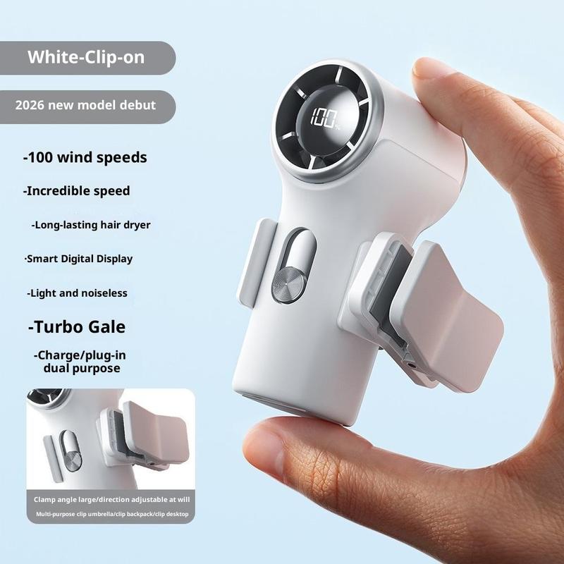 • YS-G10 Clip-On mini-handventilator - Oplaadbare ventilator met 3000 mAh-batterij, digitaal display en 100 snelheidsstanden
