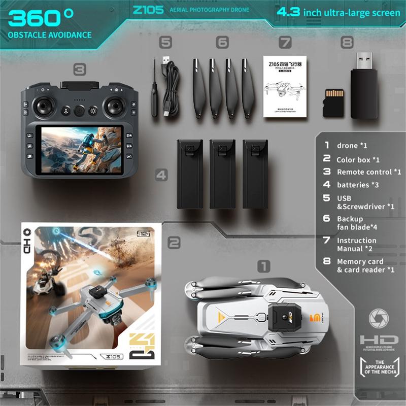 De Z105 Drone combineert draagbaarheid, innovatie en prestaties in één compact pakket. Met zijn 4.3" schermcontroller, borstelloze motoren en geavanceerde vluchtfuncties is het de ultieme tool voor moeiteloze, stabiele luchtfotografie en meeslepende vliegervaringen.