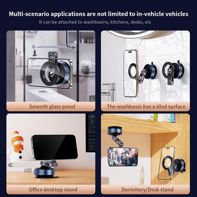 Een slanke, opvouwbare dashboardhouder die je telefoon op zijn plaats houdt met N52-magneten en vacuümzuiging. Geniet van docking met één hand, stabiliteit zonder wiebelen en een helder zicht, of je nu navigeert, belt of muziek streamt onderweg.