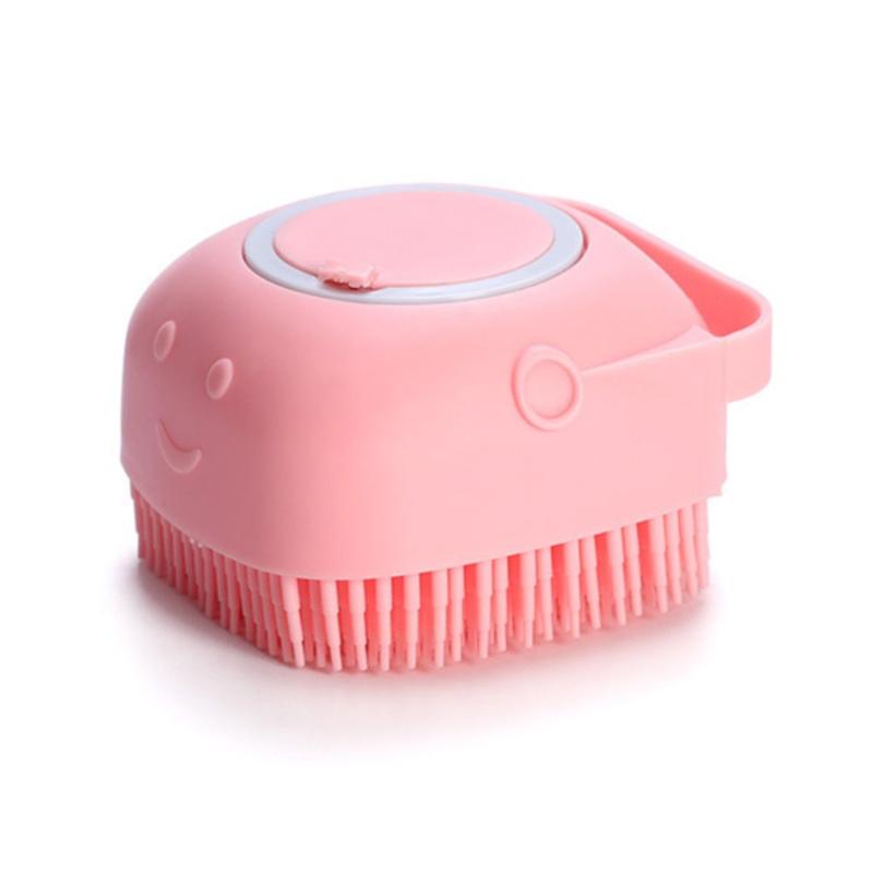 Badborstel voor zachte honden en katten - Rubberen borstel voor het verzorgen van huisdieren met shampoodispenser