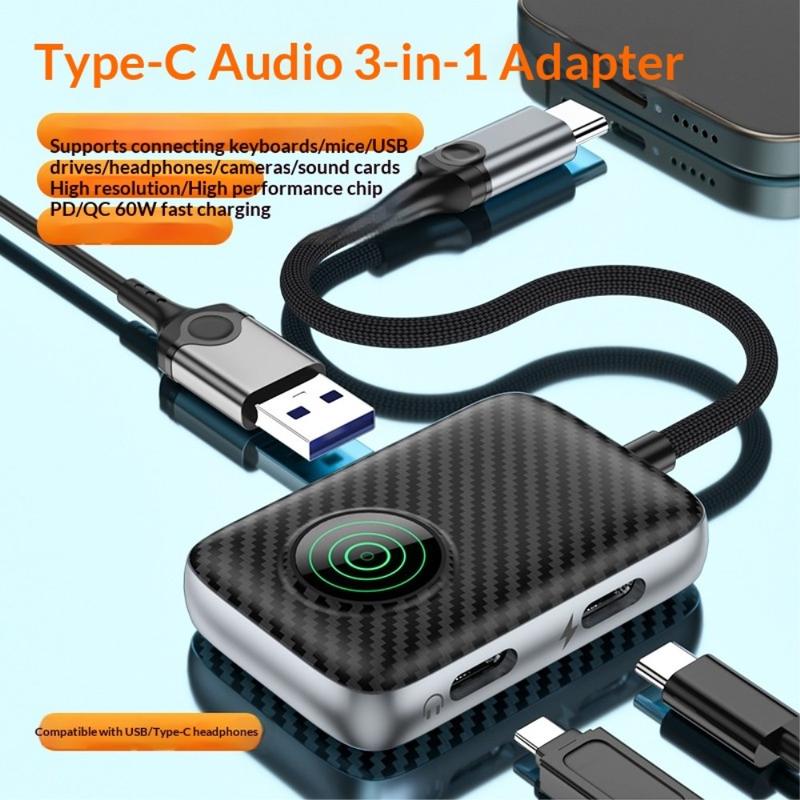 ZC4339 3-in-1 USB-C OTG-adapter/hub – USB 3.0-gegevens, USB-C-audio/gegevens en 60 W PD-snelladen