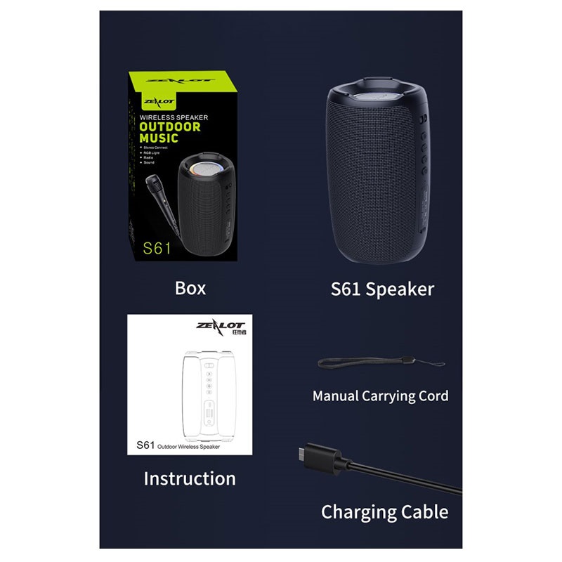 - De Zealot S61 draagbare draadloze luidspreker brengt je krachtig geluid