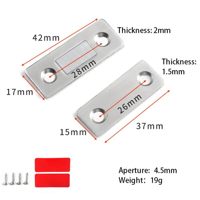 Deze magneet voor kastdeuren is dun genoeg om te negeren, maar sterk genoeg om kastdeuren, laden, kasten, schuifdeuren en andere deuren gesloten te houden.