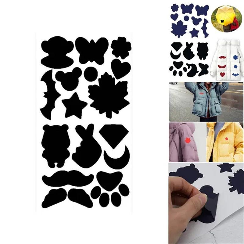 Repareer scheuren in een paar seconden - geen naald, hittepers, geen gedoe. Deze peel-and-stick patch sheet heeft meerdere voorgeknipte vormen die direct hechten op nylon, polyester of donsdichte stoffen, waardoor lekken en scheuren op jassen, regenkleding of kampeerspullen worden gedicht met een vlakke, bijna onzichtbare afwerking die bestand is tegen regen, wassen en schuren.