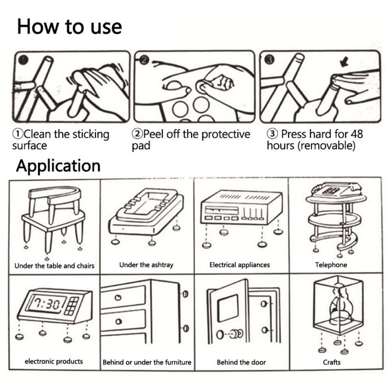 - Sterke zelfklevende achterkant: De krachtige kleeflaag zorgt ervoor dat deze pads stevig op hun plaats blijven op verschillende oppervlakken, zoals hout, metaal, glas en plastic.