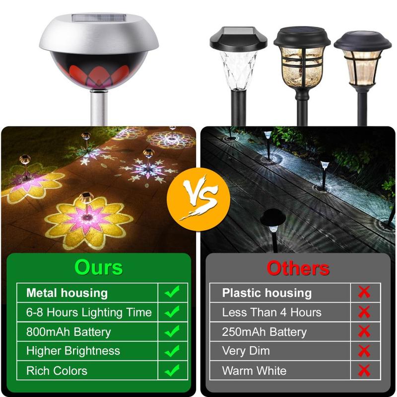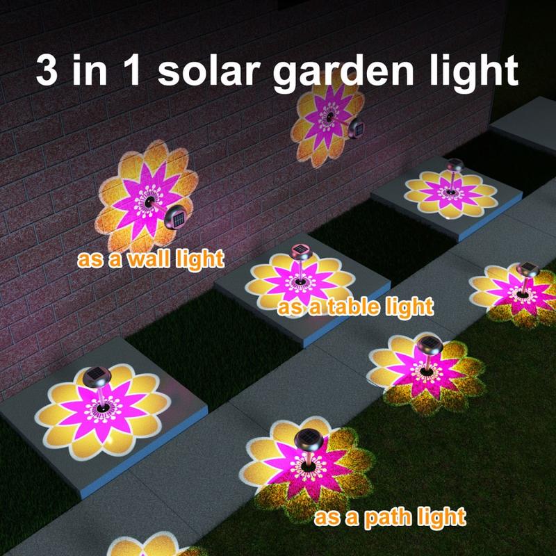 Zonnebloemprojectielamp op zonne-energie F10 - Roestvrij-Staal 0.2W Lamp, 7-Kleuren Patroon, IPX Waterdicht voor Tuin & Patio