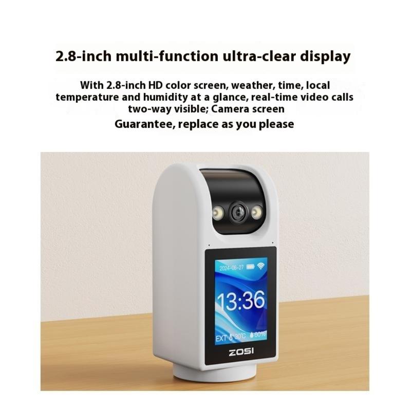 Geniet dag en nacht van gemoedsrust met de ZOSI C520M. Het heldere 2,8 inch scherm toont in één oogopslag Wi-Fi-sterkte, tijd, weer en binnenklimaat, terwijl de 4MP lens draait en kantelt om elke beweging in haarscherp Quad-HD detail te volgen.
