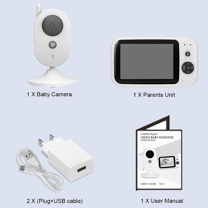 ZR303B babyfoon met 3,2-inch LCD-scherm, 2,4 GHz FHSS, tweewegcommunicatie, nachtzicht en temperatuuralarm